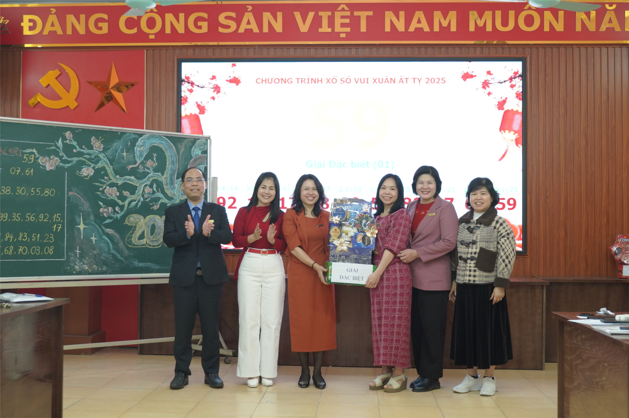 Chương trình được mong chờ nhất là sổ số vui xuân, mang lại không khí hào hứng, đầy bất ngờ cho mọi người. Các thầy cô và nhân viên nhà trường đã tham gia vào việc bốc thăm và nhận những phần quà thú vị, mang đậm không khí Tết. Những phần quà này không chỉ là vật chất mà còn là những món quà tinh thần, tạo nên không gian vui vẻ, gắn kết mọi người trong những giờ phút cuối cùng của năm.