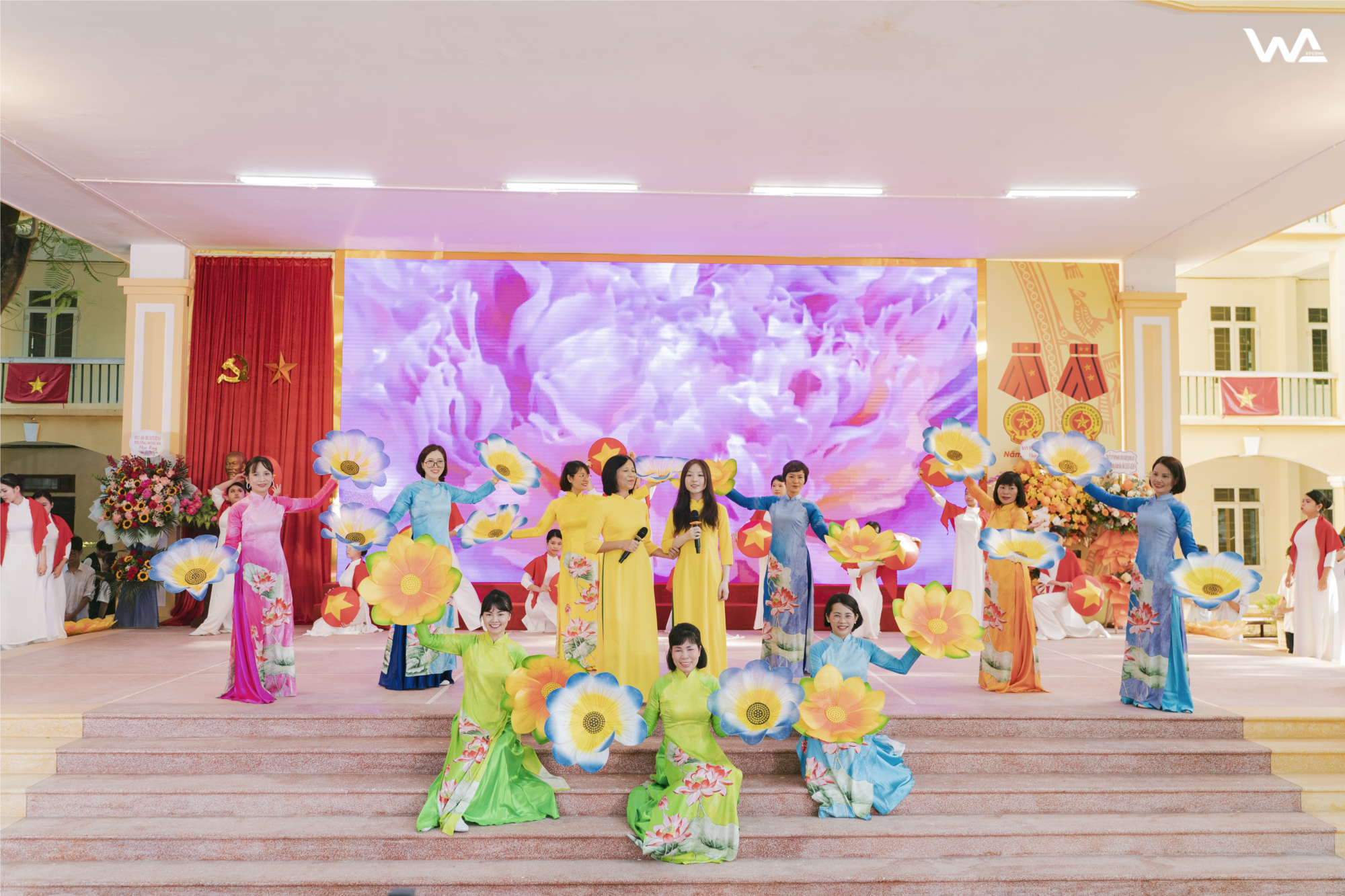 Phát biểu tại buổi lễ, nhà giáo, thạc sỹ Lưu Thị Lập – Bí thư Đảng ủy, Hiệu trưởng nhà trường đã ôn lại ý nghĩa lịch sử của mùa thu năm 1945, khẳng định quyết tâm xây dựng một môi trường học tập “Trí tuệ – Bản lĩnh – Nhân văn – Sáng tạo – Khát vọng”, nơi mỗi học sinh được khuyến khích phát triển toàn diện. Đồng thời, cô cũng biểu dương những thành tích nổi bật trong năm học 2024 – 2025, nhấn mạnh mục tiêu phấn đấu để năm học mới trở thành một chặng đường đầy tự tin và thành công.