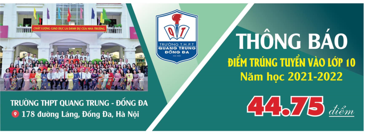 Trường THPT Quang Trung-Đống Đa trân trọng gửi tới các thầy cô giáo, các bậc PHHS và các em học sinh điểm trúng tuyển vào 10 năm học 2021-2022. Nhà trường sẽ cập nhật Thông tin tuyển sinh và Hướng dẫn nhập học cụ thể trong những thông báo tiếp theo. Trân trọng.